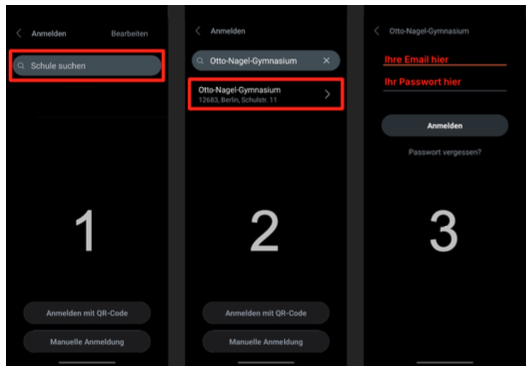 - Geben Sie im Suchfeld den Namen der Schule ein: Otto-Nagel-Gymnasium